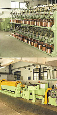 PVC製粒生產線(高速熱混合機、立式冷卻攪伴機、150mm押出機)。 雙絞機。 7股砲筒絞線機(可達0 AWG或60mm2)。 鋁箔麥拉包紙機。 纏繞機。 高速編織機。 單絞機。 芯線及外被押出機。 |
